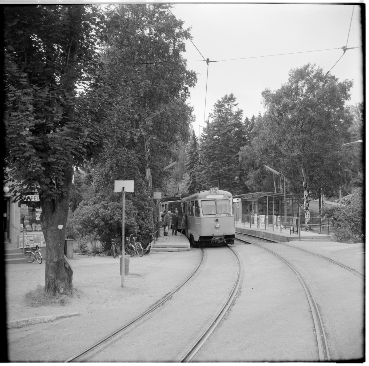 Aktiebolaget Stockholms Spårvägar, SS B24 646 "ängbyvagn" linje 12 Alvik vid hållplats Örnbogatan.