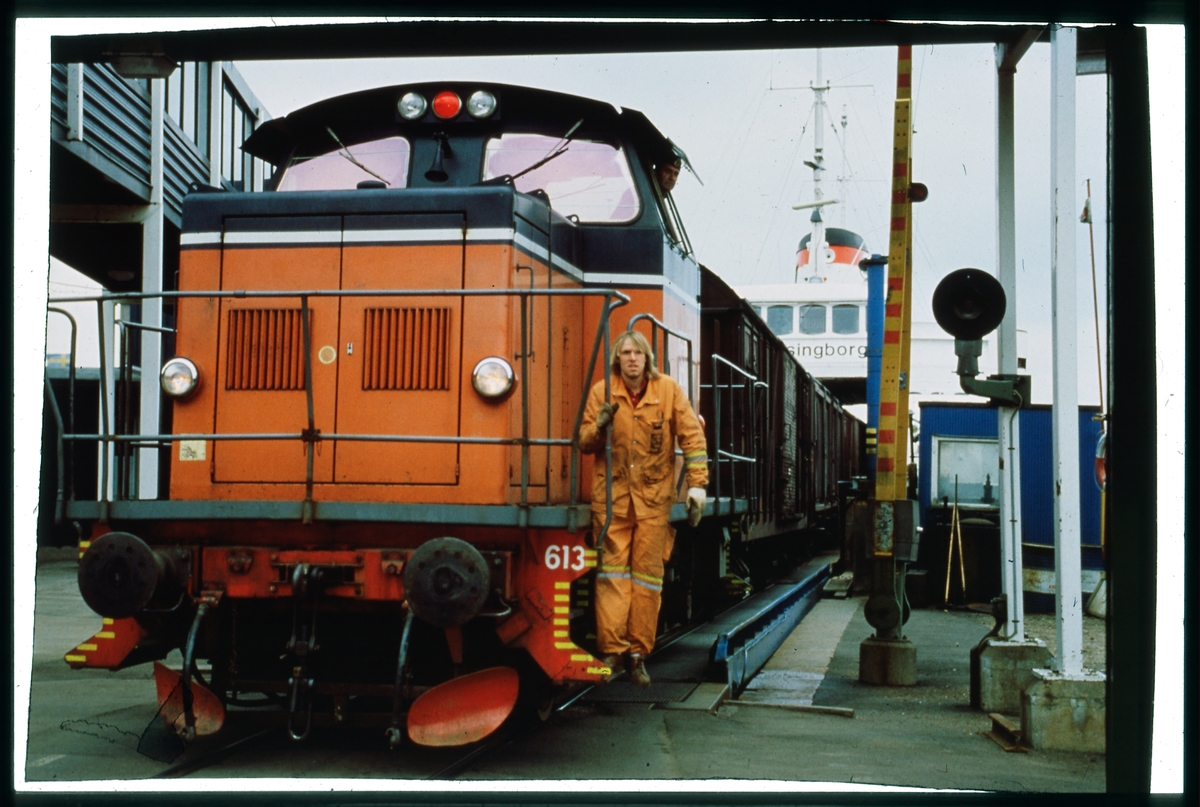 Statens Järnvägar, SJ Z66 613 med godsvagnar vid tågfärja.