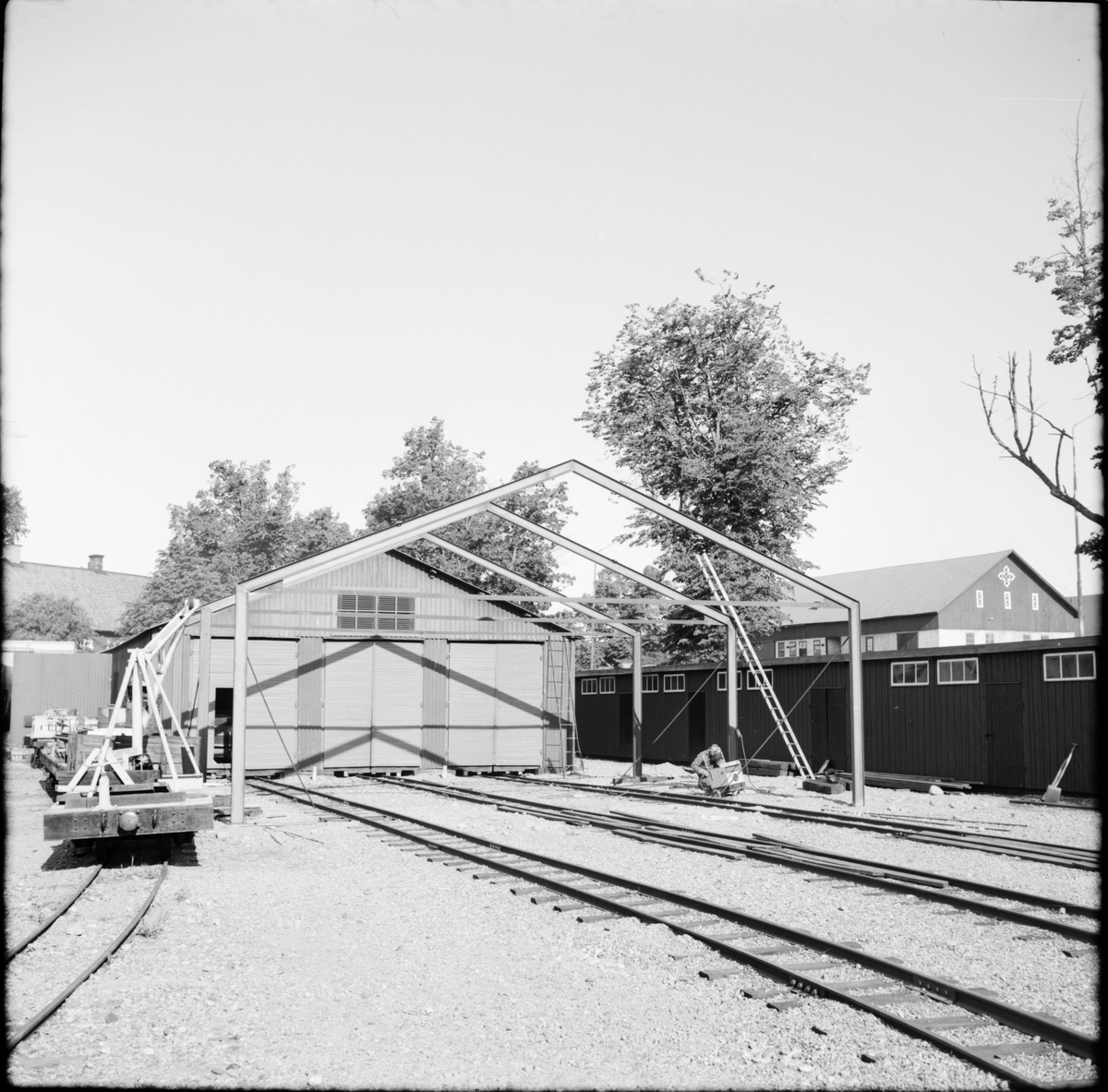 Tillbyggnad på verkstaden på bangården i Mariefred som användes av Museijärnväg Östra Södermanlands Järnväg, ÖSlJ.