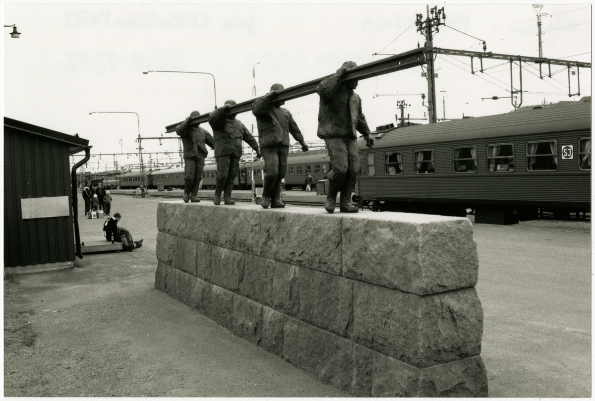 Skulptur i brons och grantit av Torsten Fridh vid namn Rälsbäraren, uppförd 1965 vid järnvägsstationen i Kiruna.