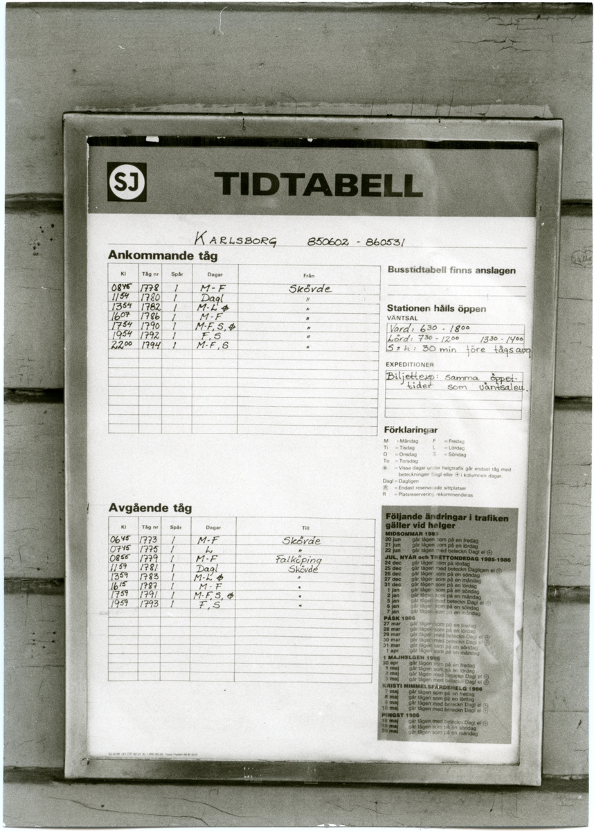 Tidtabell rörande avgång och ankomst till Karlsborgs Tågstation.