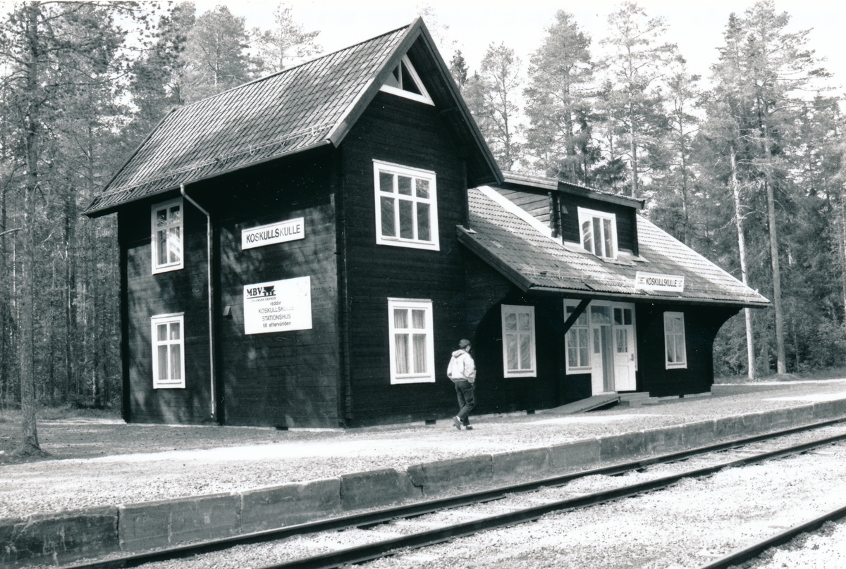 Statens Järnvägar, SJ Koskullskulle Stationhuset flyttat till Malmbanans vänners museum i Karlsvik.Luleå 1990