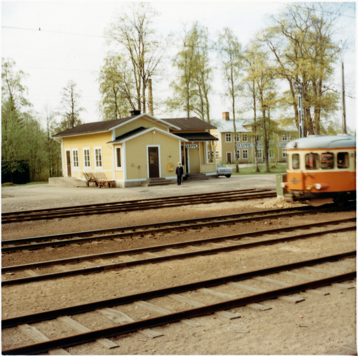 Station anlagd 1865. Envånings stationshus i trä, byggt i vinkel. Stationshuset ombyggdes 1948 och 1949 utökades magasinet.