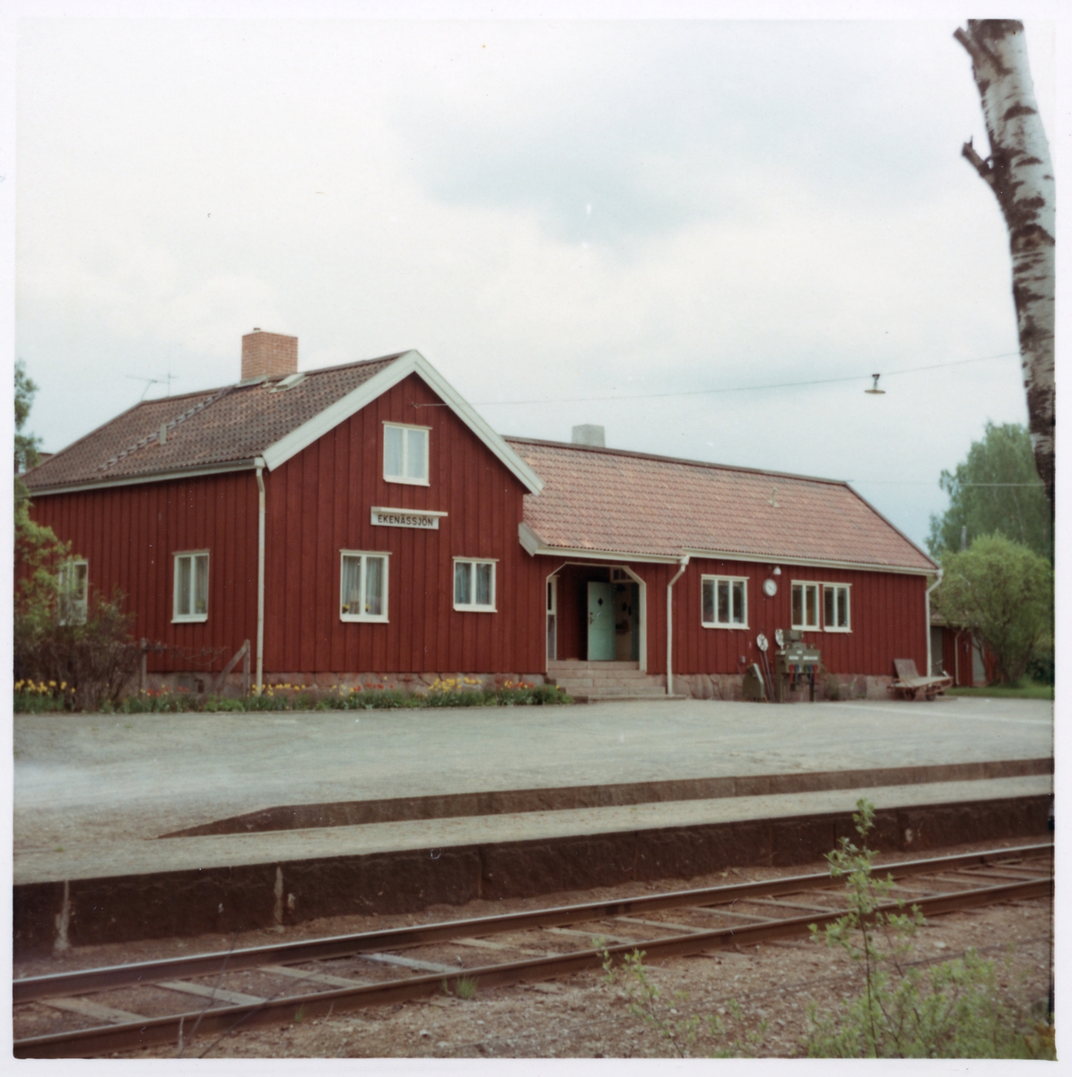 Station anlagd 1913. Envånings stationshus i trä, byggt i vinkel. Väntsalen och expeditionslokalerna moderniserades 1945, tjänstebostaden 1950.