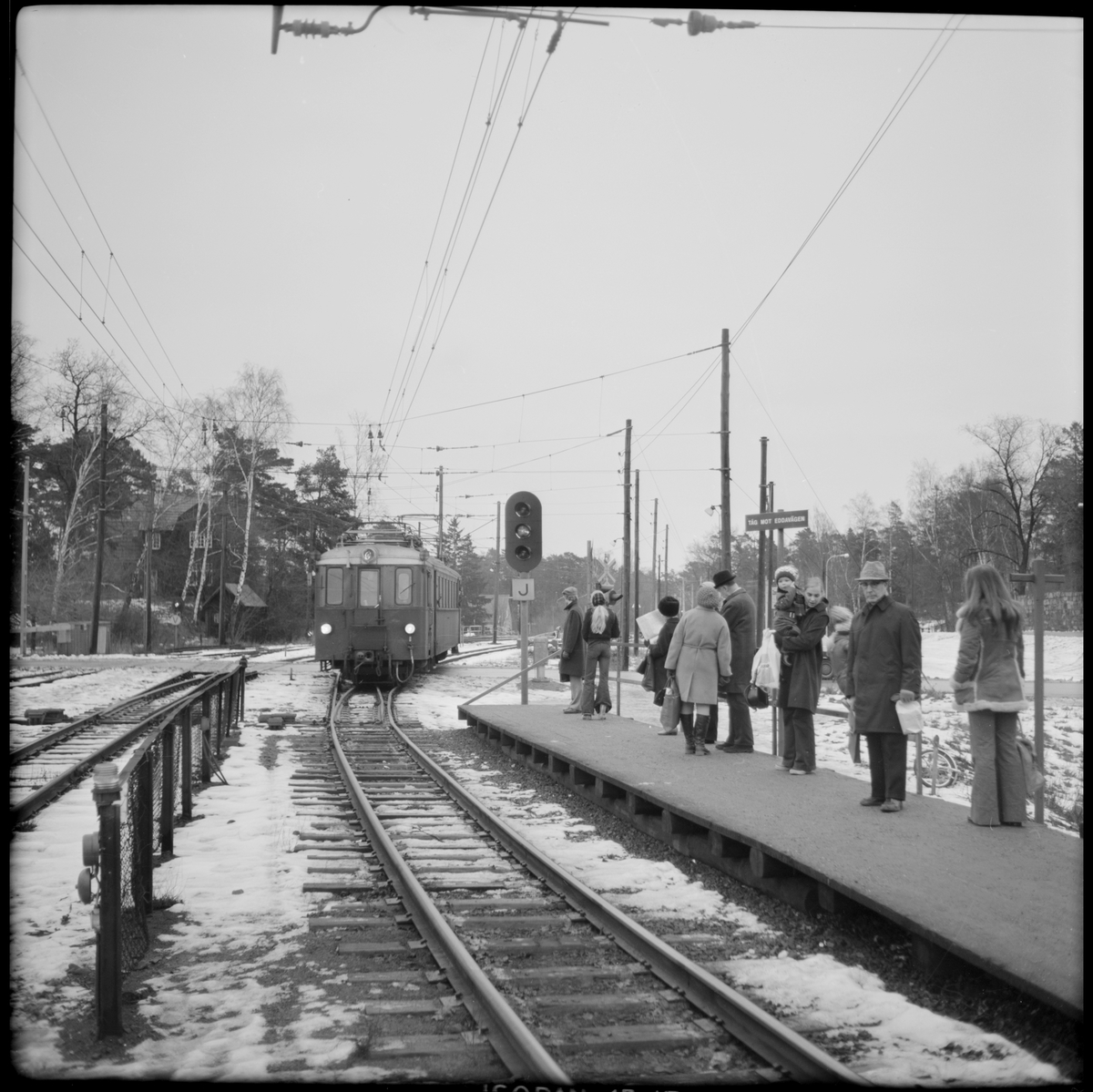 Motorvagn på ingång till hållplats Djursholm - Ösby i Stockholm.