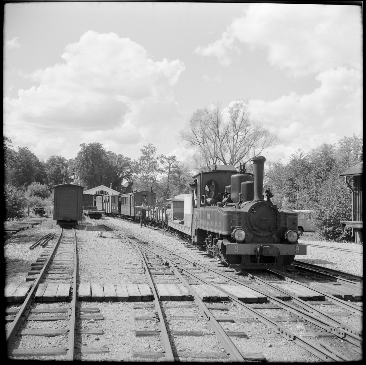 Museijärnvägen, Östra Södermanlands Järnväg, ÖSlJ blandtåg med lok 8 "Emsfors" utanför lokstallet i Mariefred.