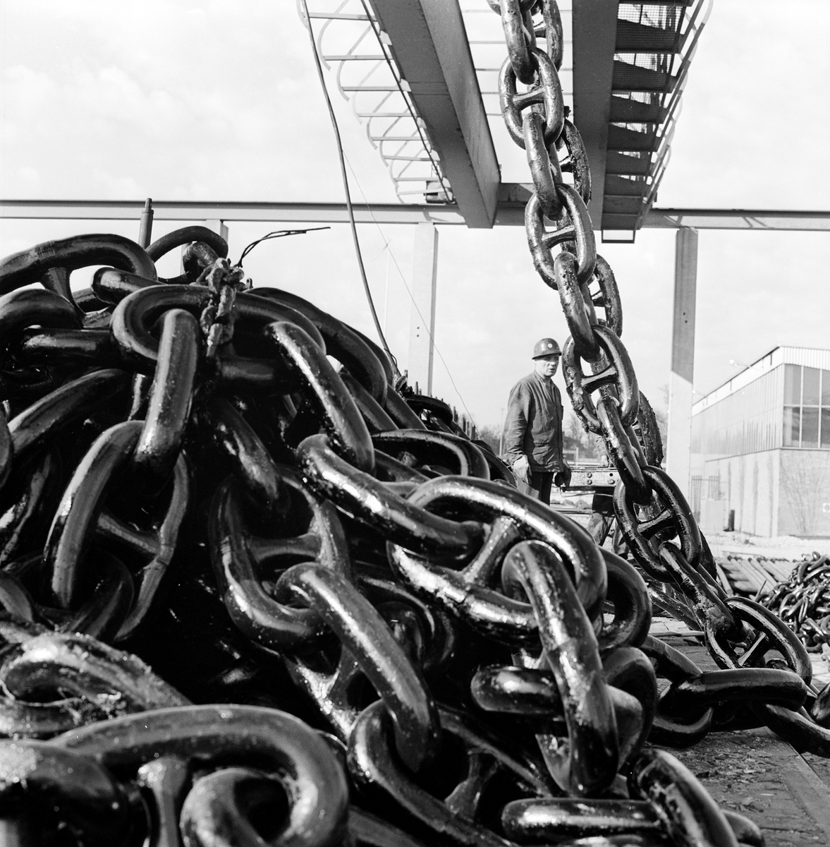 Titel: Ankarkätting. Ramnäs Bruk, järnbruk från 1500-talet som specialiserat sig på ankarkätting sedan 1876, är internationellt känd för sin tillverkning av grova ankarkättingar till oljeplattformar