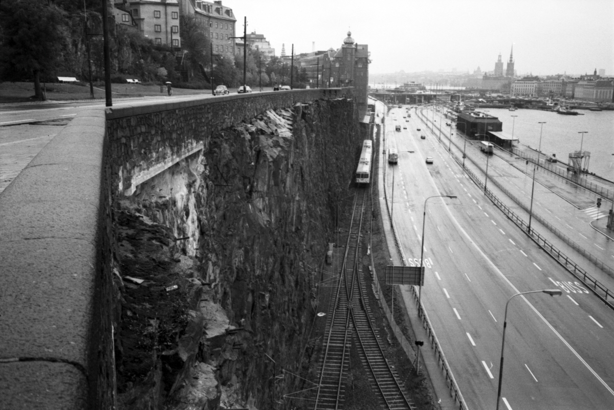 Stadsgården. "pendeltåg" trafikerande Saltsjöbanan vid växel till Stadsgårdhamnens hamnspår straxt innan Saltsjöbanan går in i Stadsgårdstunneln.