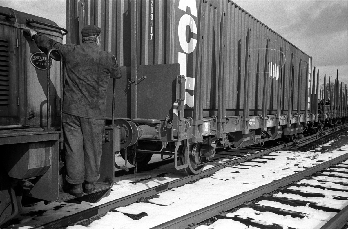 Titel: Karlstads trafikområde. Normalspåriga godsvagnar lastade på smalspårig överföringsvagn från Nordmark - Klarälvens Järnvägar, NKlJ.
