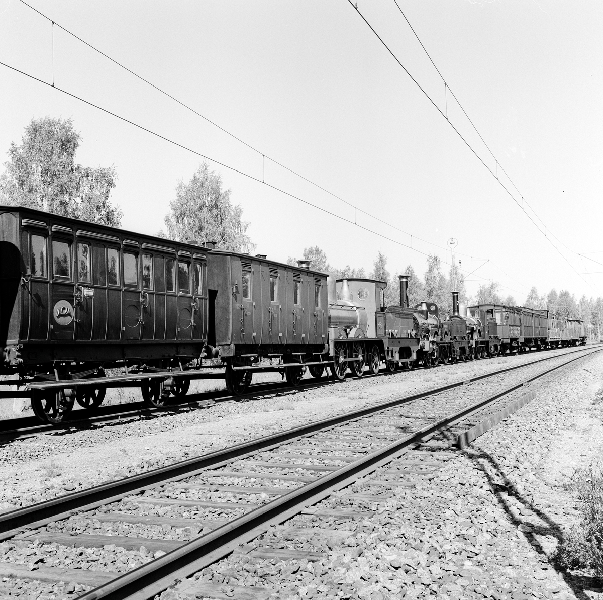 Järnvägsmuseet flyttar från Stockholm till Gävle. KHJ 40, SJ C6a 182, OFWJ 8, SJ B 43 "Prins August", SJ A 75 "Göta", SJ 5 Kunglig audiensvagn mellan Uppsala och Gävle