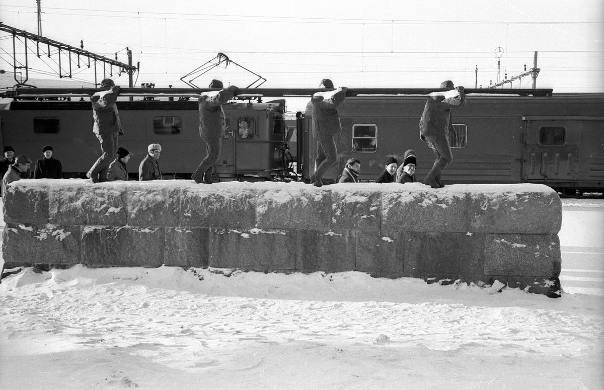 Monument över rallare. Representanter från UIC - International Union of Railways, internationell järnvägsorganisation