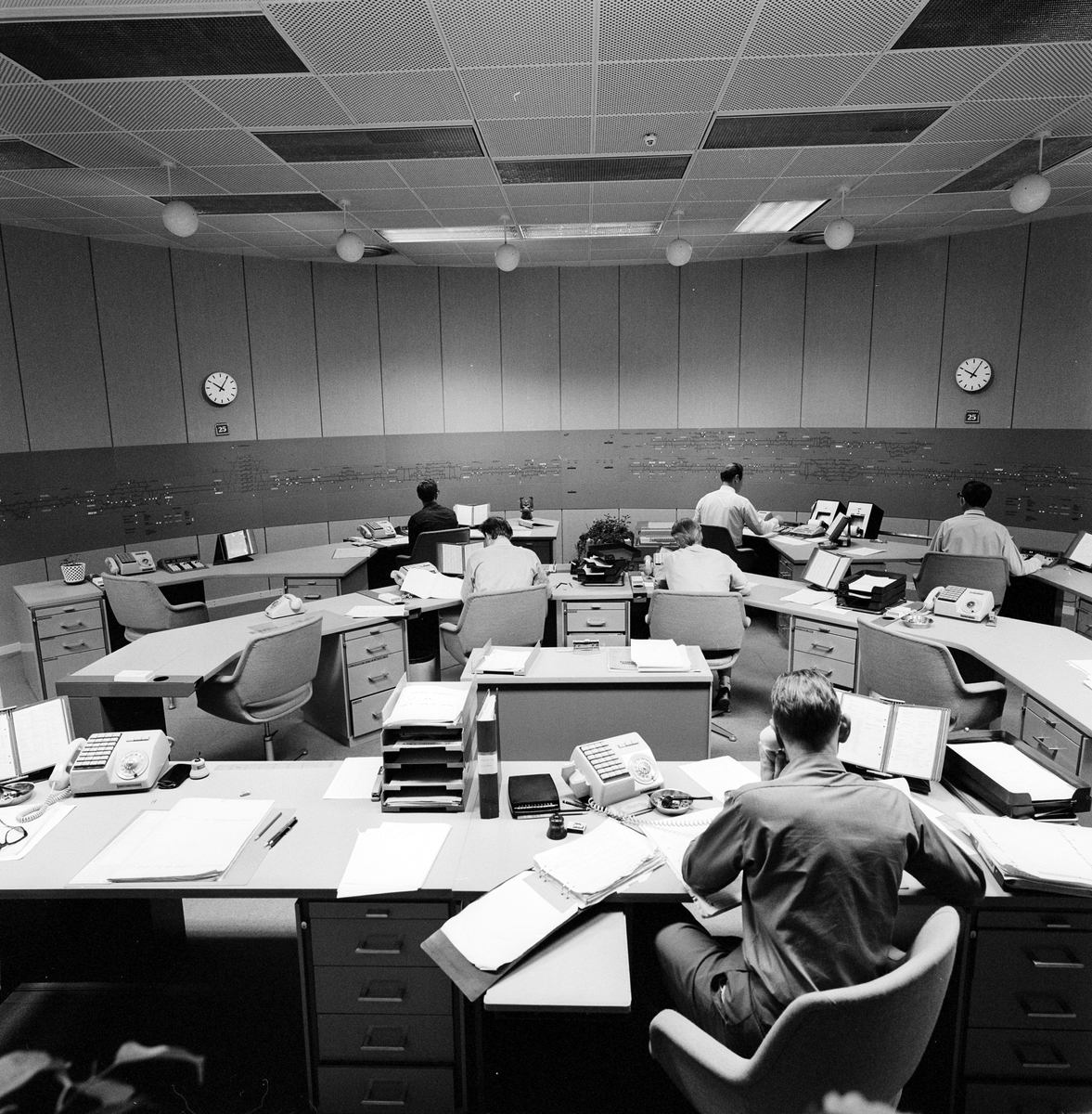 Statens Järnvägar SJ När - Fjärrställverk Stockholm Central. Interiör av hallen.