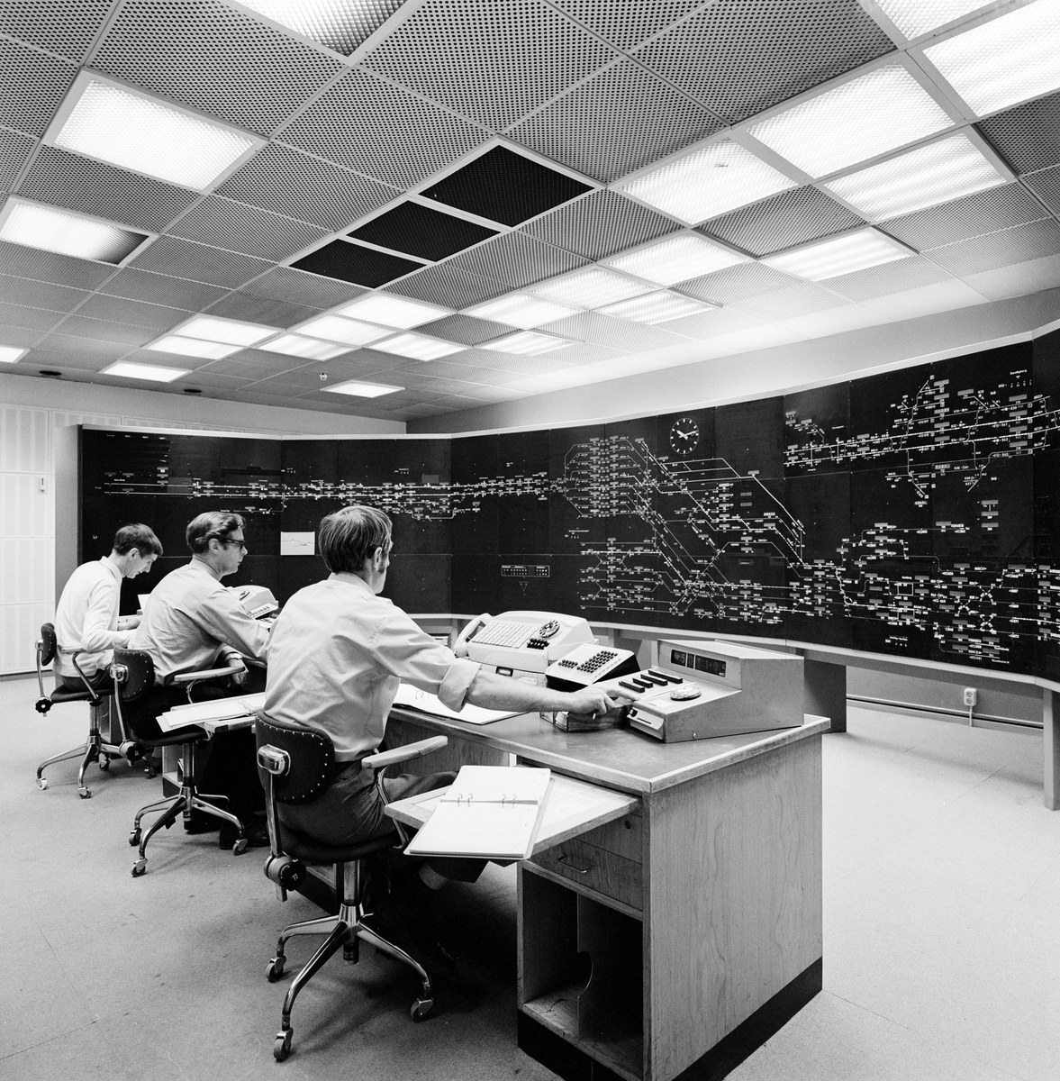 När- och fjärrställverk Centralstationen. Interiör av C-hallen.