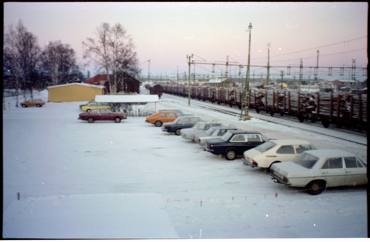 Parkering och bangård vid Boden centralstation.