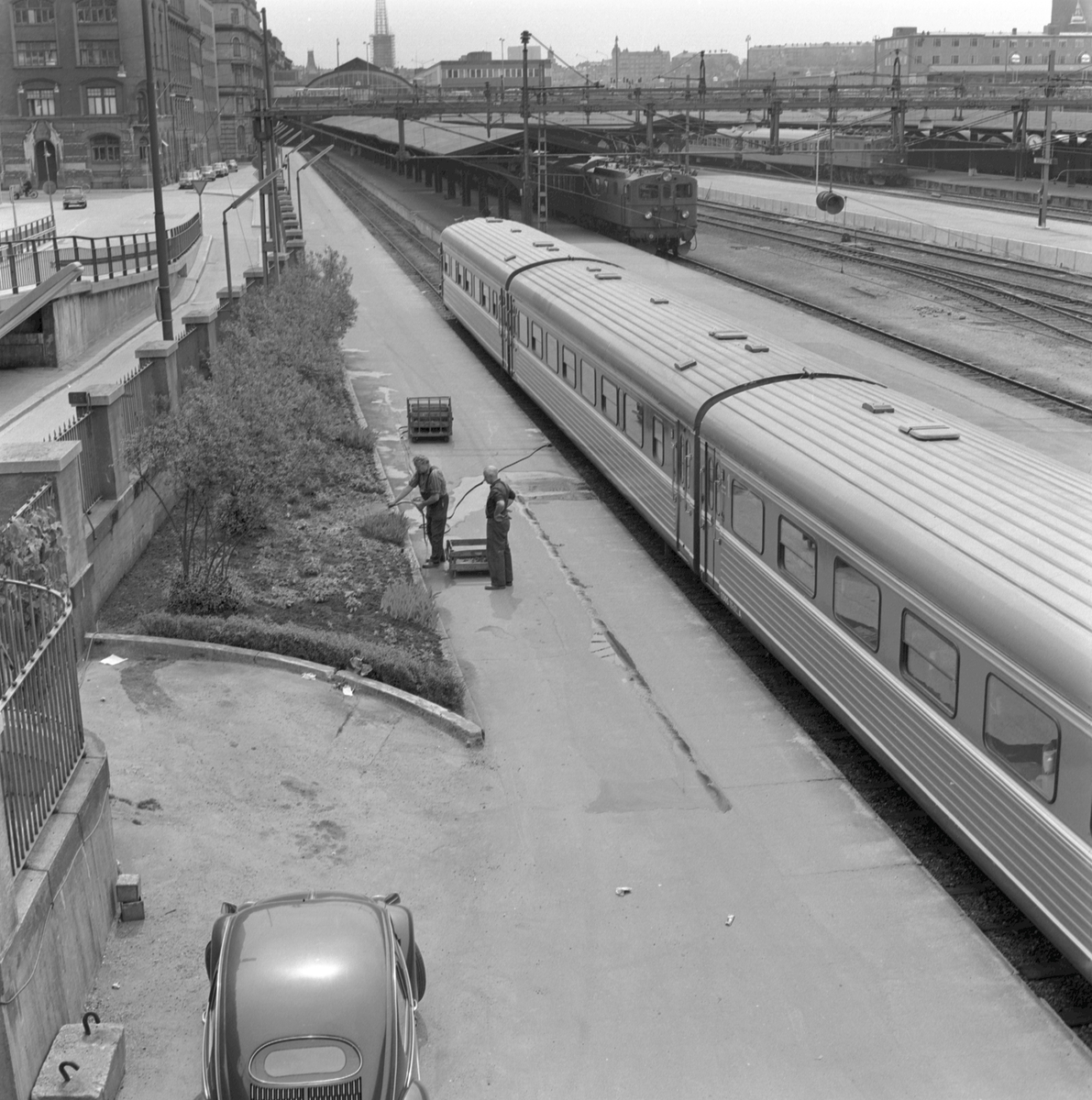 Planteringsarbete vid Stockholm centralstation.