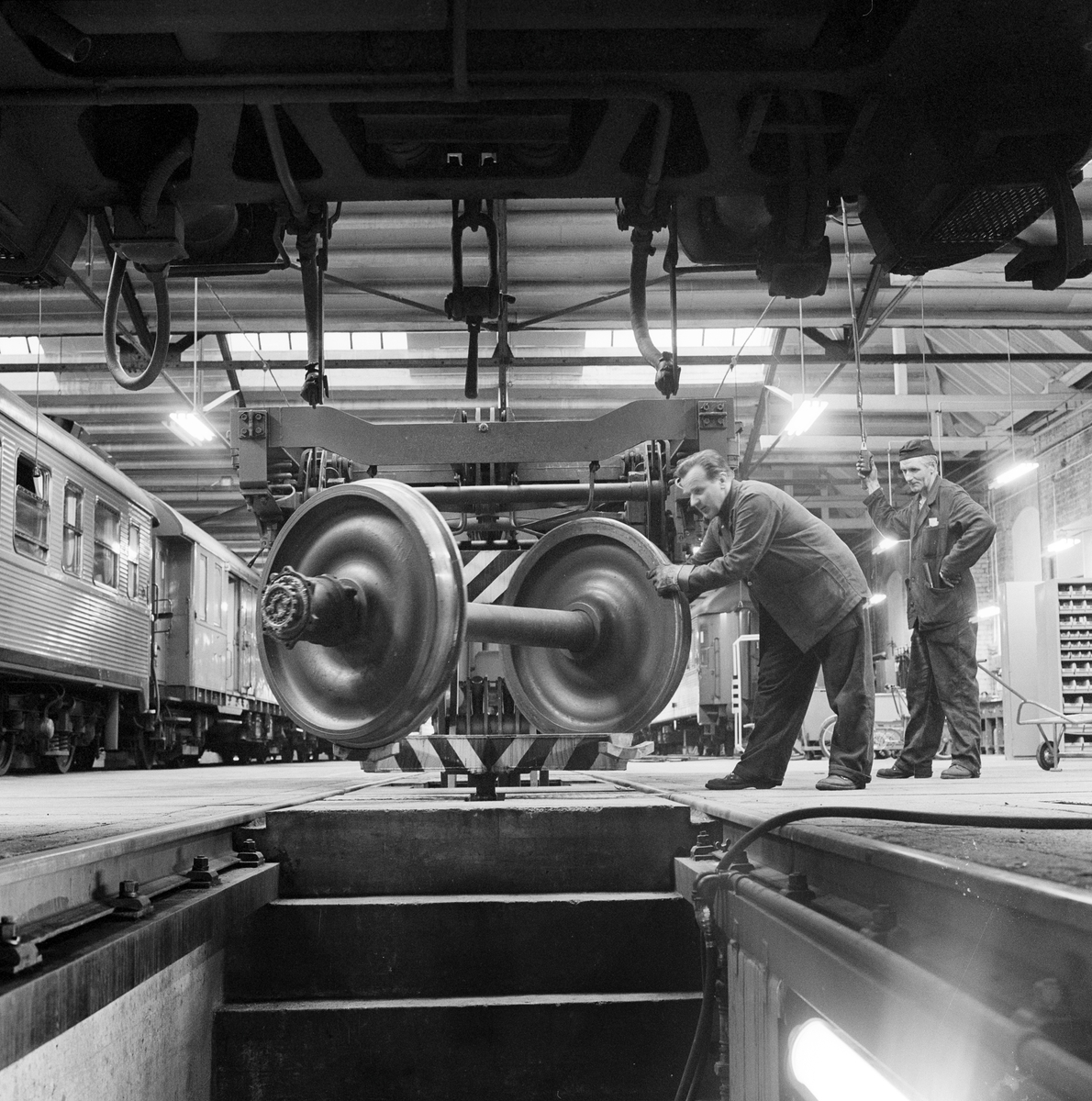 Titel: Vagnverkstaden i Hagalund. Hjulbyte