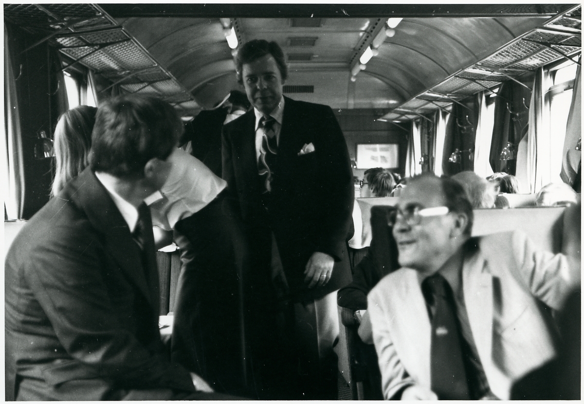 Från invigningen av eldriften på linjen Borlänge - Mora. Med på resan Gd Bengt Furbäck, museichefen C-A Alrenius m.fl.