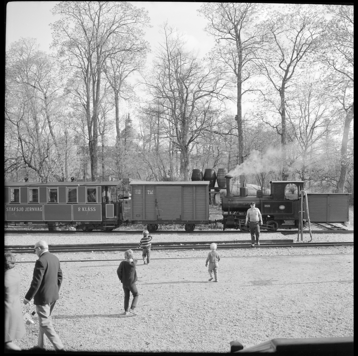 Museijärnvägen, Östra Södermanlands Järnväg, ÖSlJ lok 3 "Dylta", Kosta - Lessebo Järnväg, KLJ G 29 och Stafsjö Järnväg 2:a klass personvagn på stationen i Mariefred.