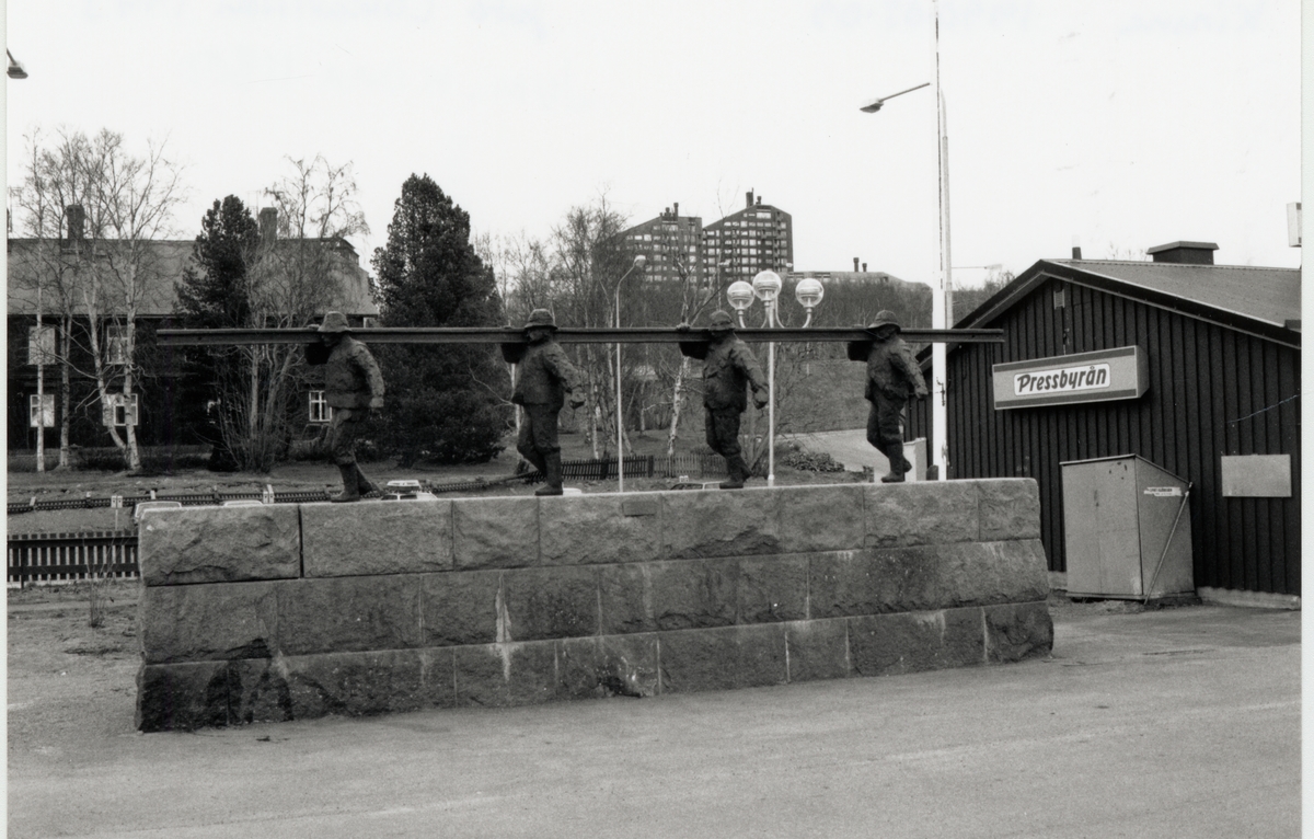 Skulptur i brons och grantit av Torsten Fridh vid namn Rälsbäraren, uppförd 1965 vid järnvägsstationen i Kiruna.