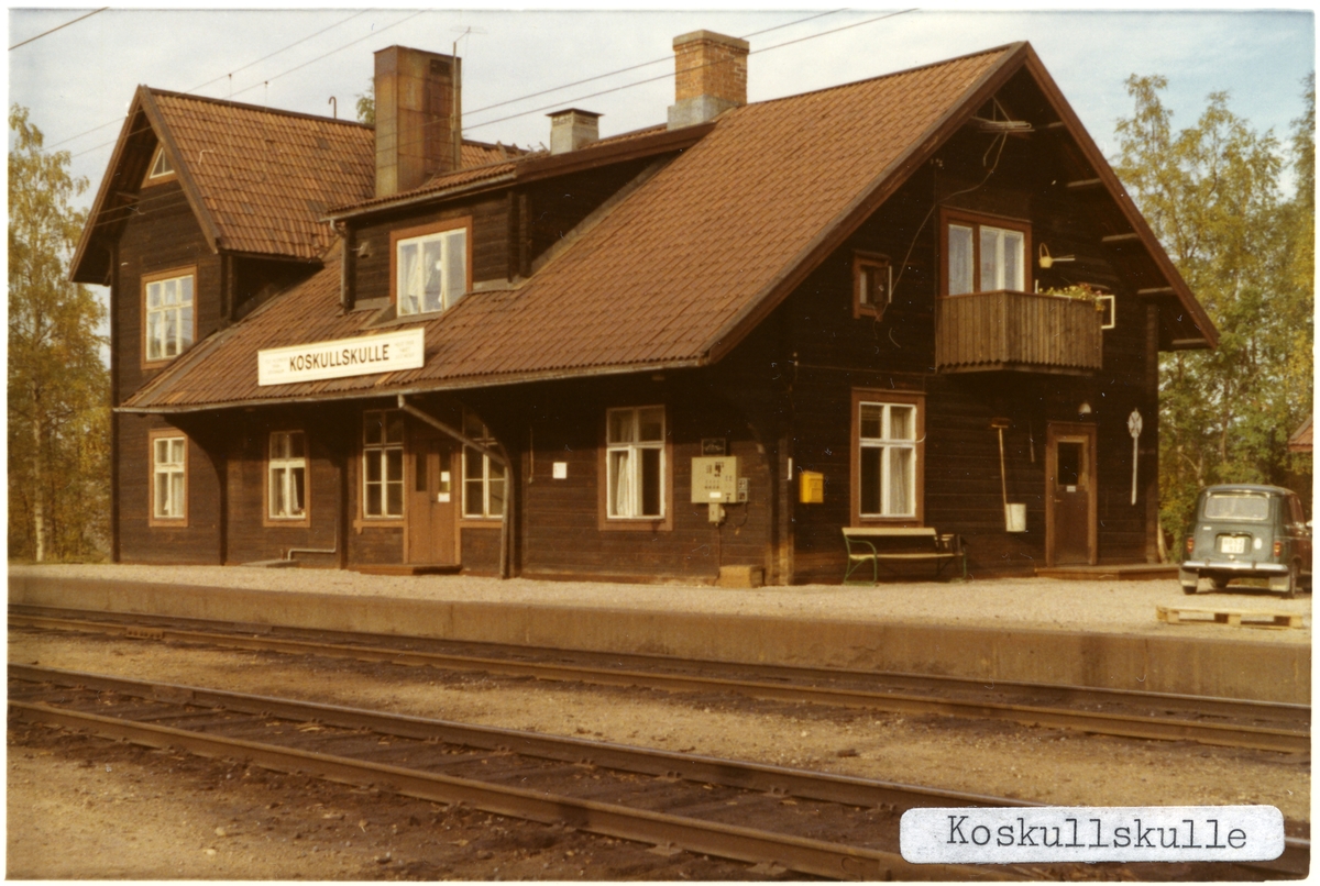 Titel: Stationen anlagd 1898 med tvåvånings stationshus i trä. Stationshuset är flyttat till MalmBanansvänners museum, MBv museum i Karlsvik, Luleå. Namnet ändrades från Koskulls kulle till Koskullskulle 1910-08-27
