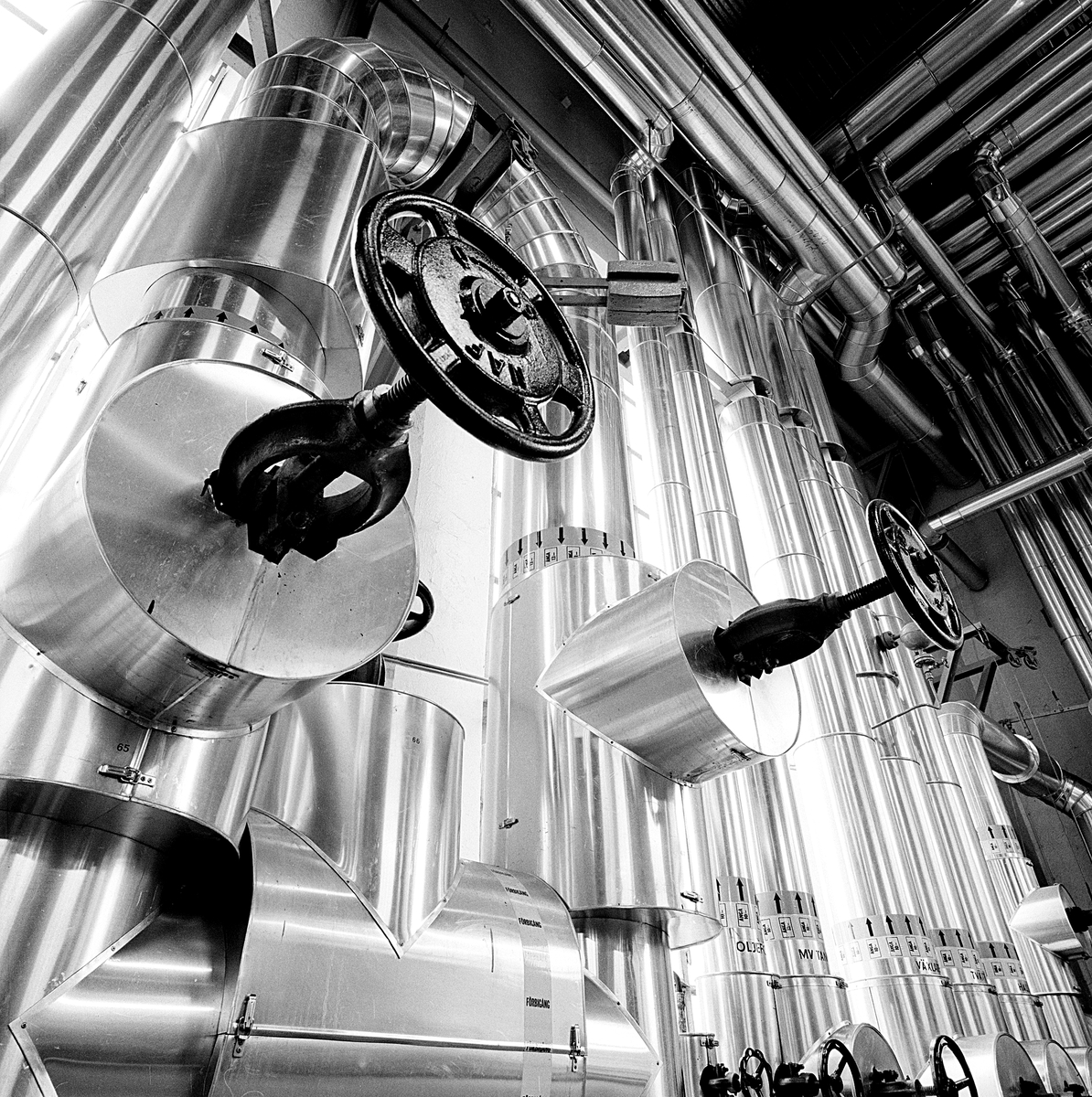 Statens Järnvägar, SJ, driftverkstad "Hagalund Övre" för underhåll av fjärrgående vagnar och lok. Ångcentral med värmecentral, lokstall med driftverkstad, vattentorn, vagnhall för service med mera. Ångcentral - värmecentral, detalj