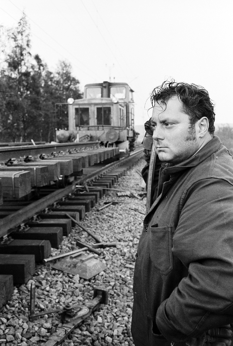 Spårbyte i midnattssol, natten 23-24/6 i Kiruna. Banarbetare Inge Boström.