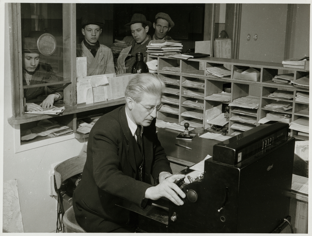 Petrus Sporrong, förste kontorist, vid kassan på godsexpeditionen.