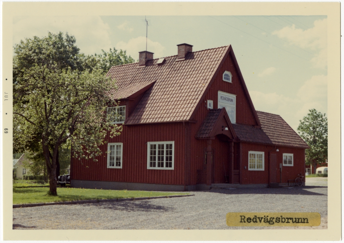 Vy vid Redvägsbrunn. Håll- och lastplats, öppnad med banan 1917. En- och enhalvvånings stationshus i trä, byggt i vinkel. Avbemannad 1958. Väntkur ej uppsatt. Tåguppehållen indrogs fr o m 17 juni 1974. Hållplats anlagd 1917 Enligt ritningar av arkitekt Rudolf Lange, Göteborg.