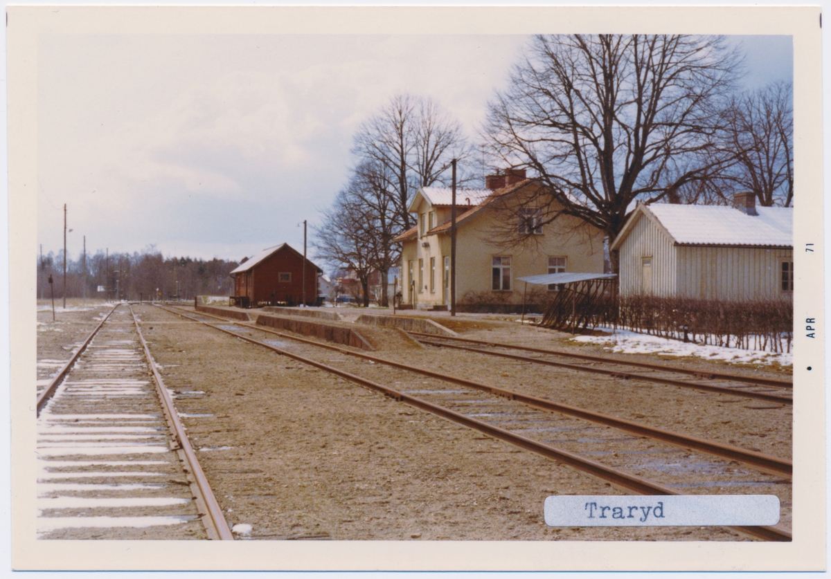 Stationen hette tidigare TRAHERYD, stationen byggdes 1898. Envånings stationshus i tegel. Till SJ cirka 1940. Persontrafiken längs hela banan upphörde i maj 1968. Godstrafiken Timsfors-Strömsnäsbruk upphörde år 2000, men SSJF's fortsatte att trafikera bandelen med museitrafik.