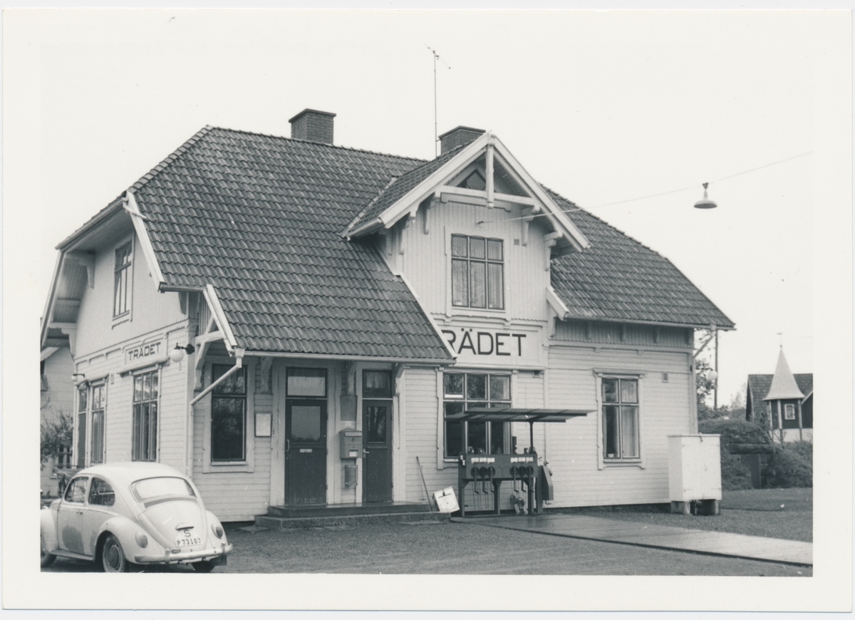 Trafikplats anlagd 1906. En- och enhalvvånings stationshus i trä. Öppnad 1906-12-21. Namnet, som ska uttalas med långt ä, kommer från ett gästgiverihemman som låg här.