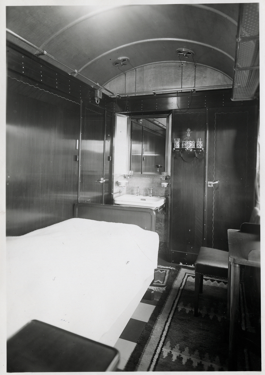 Titel: Sovrummet i Kung Gustaf V:s vagn. SJ A03 2904. Statens Järnvägar.