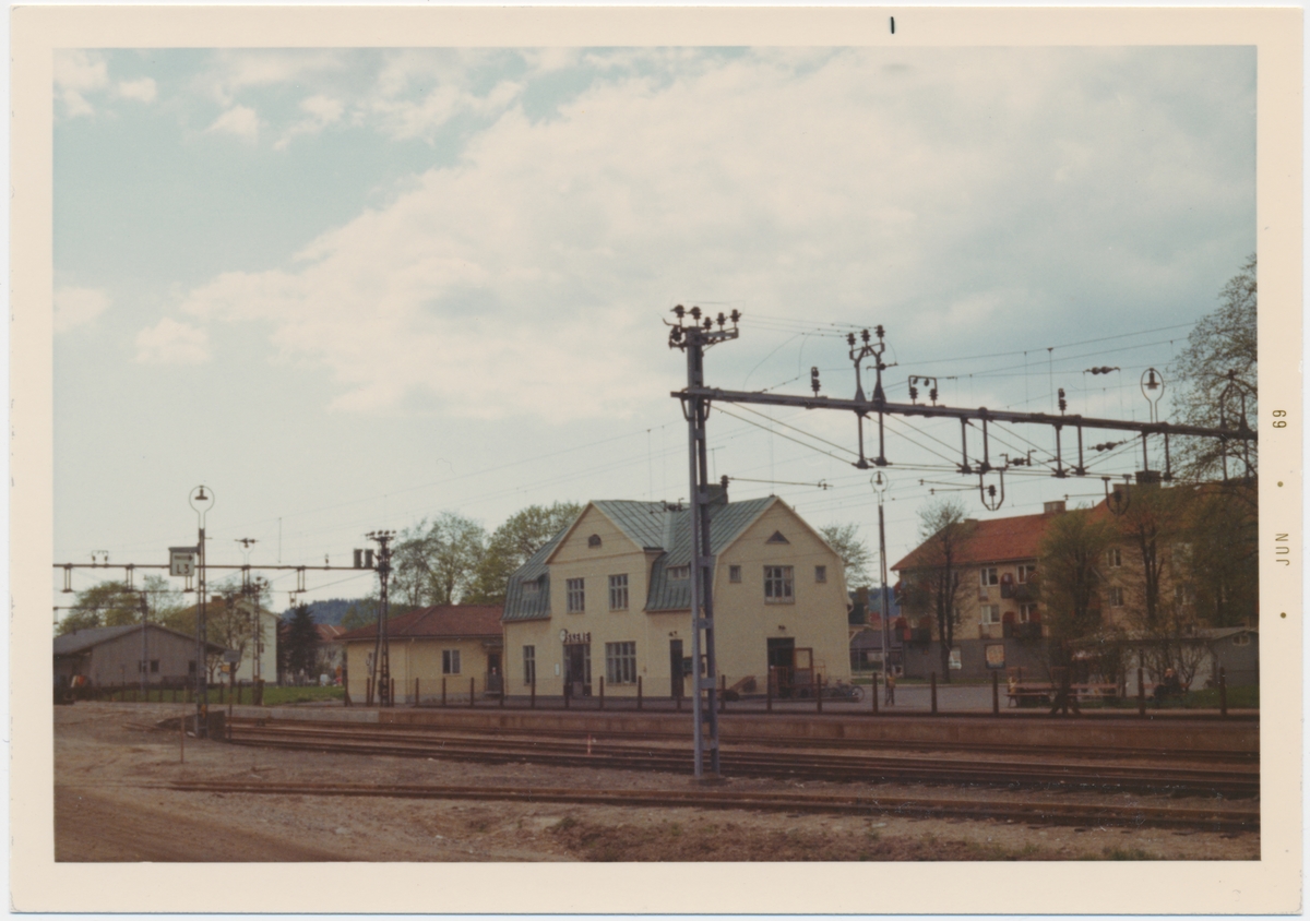 Vy vid Skene.Station anlagd 1880. Stationshus i två våningar byggt i tegel gult, putsat hus byggt 1914 av arkitekt Harald Söderberg, Varberg. Mindre inre ombyggnad 1915, och 1950 renoverades fastigheten.För resenärerna finns en hållplats med plastkur alldeles norr om stationshuset Elektrisk växelförregling