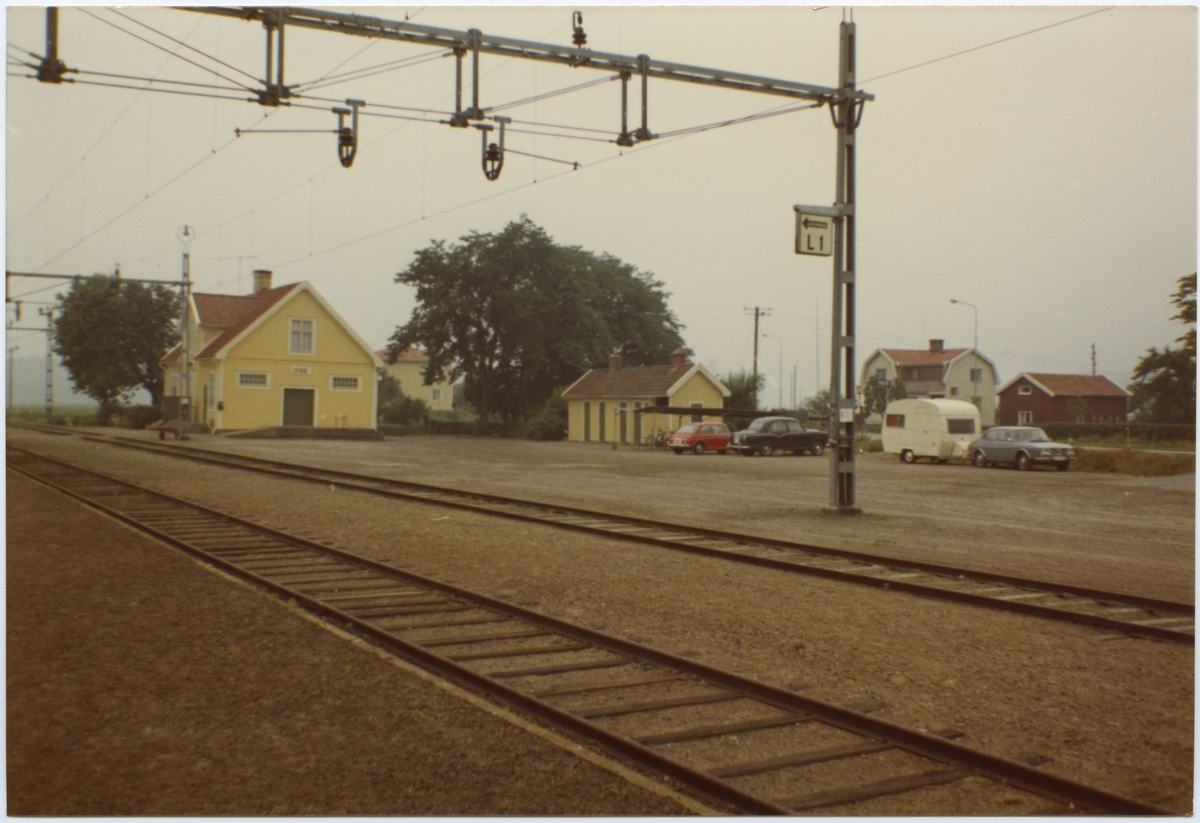 Lysekils Järnväg, LYJ, Hållplats anlagd 1913. Stationshus i en och en halv våning i trä. Bangården utökades med ett spår, till tre, 1948. Skylten L1 står det lastområde på. Statligt 1939-07-01, Elektrifering 1950-06-10, Fjärrblockering 1957.