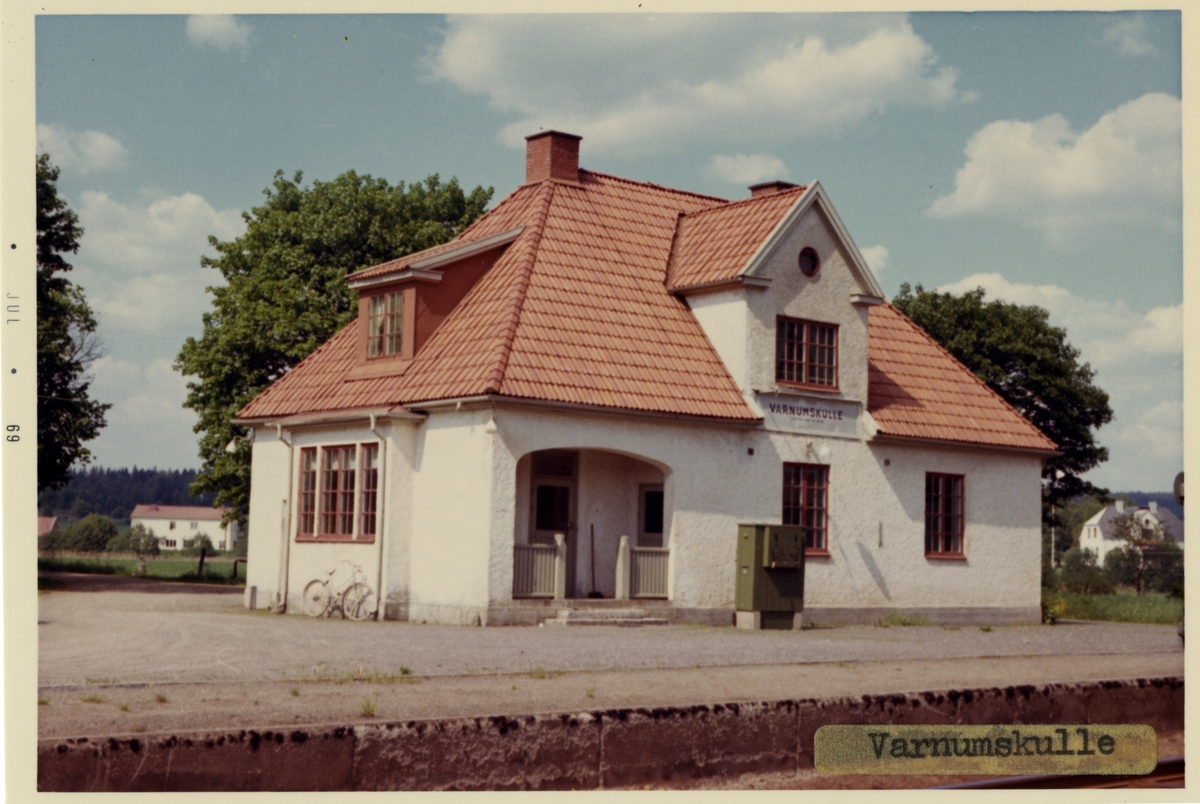 Vy vid Varnumskulle. Station anlagd 1917. Stationshus i en och en halv våning, putsat byggt enligt Arkitekt Rudolf Lange, Göteborg. Vattentorn i tegel fanns här. Stationen avbemannades 1961. Stationshuset utbjöds till försäljning 1973. En öppen väntkur uppfördes nära det söder om stationshuset belägna godsmagasinet. Trafiken upprätthölls till banans nedläggning 1985. Trafikplats anlagd 1917