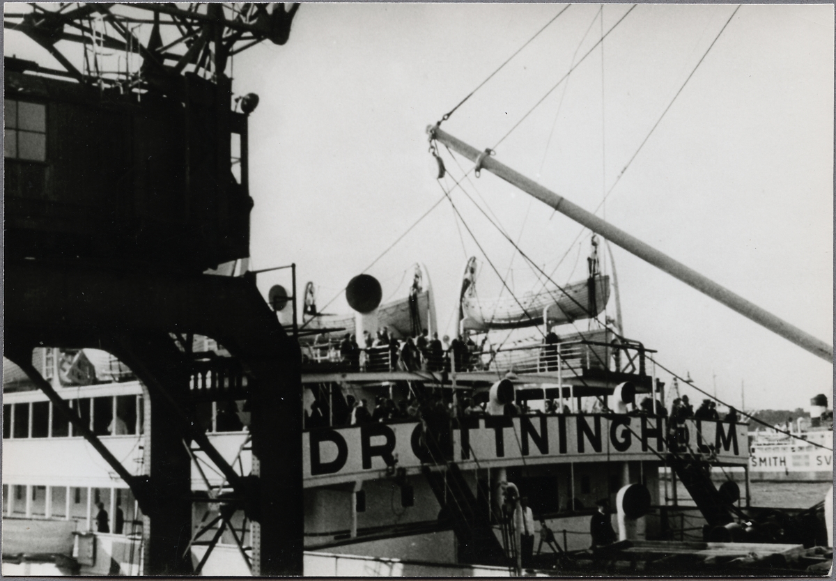 På bilden syns S/S Drottningholm, som trafikerade som hjälpkryssare under krigsåren 1940-1945.
