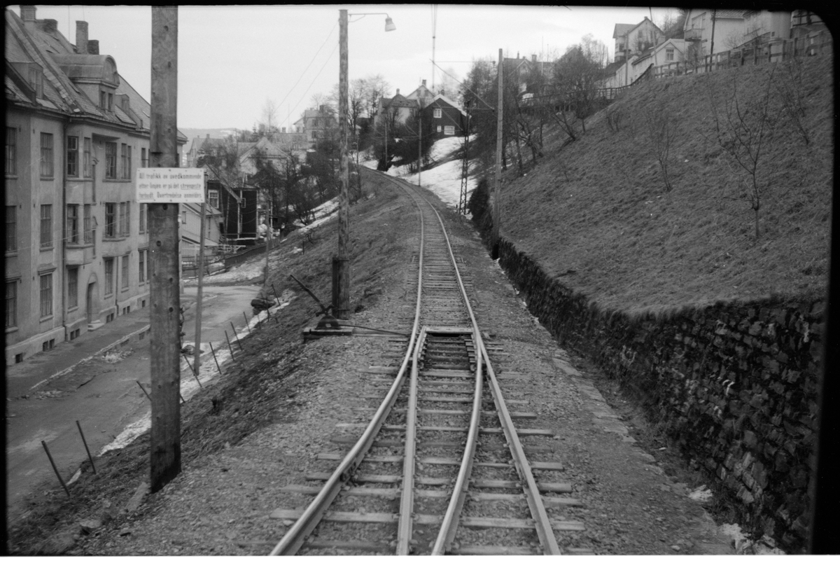 Söder om Bergsligata i Trondheim övergår dubbelspåret i enkelspår.