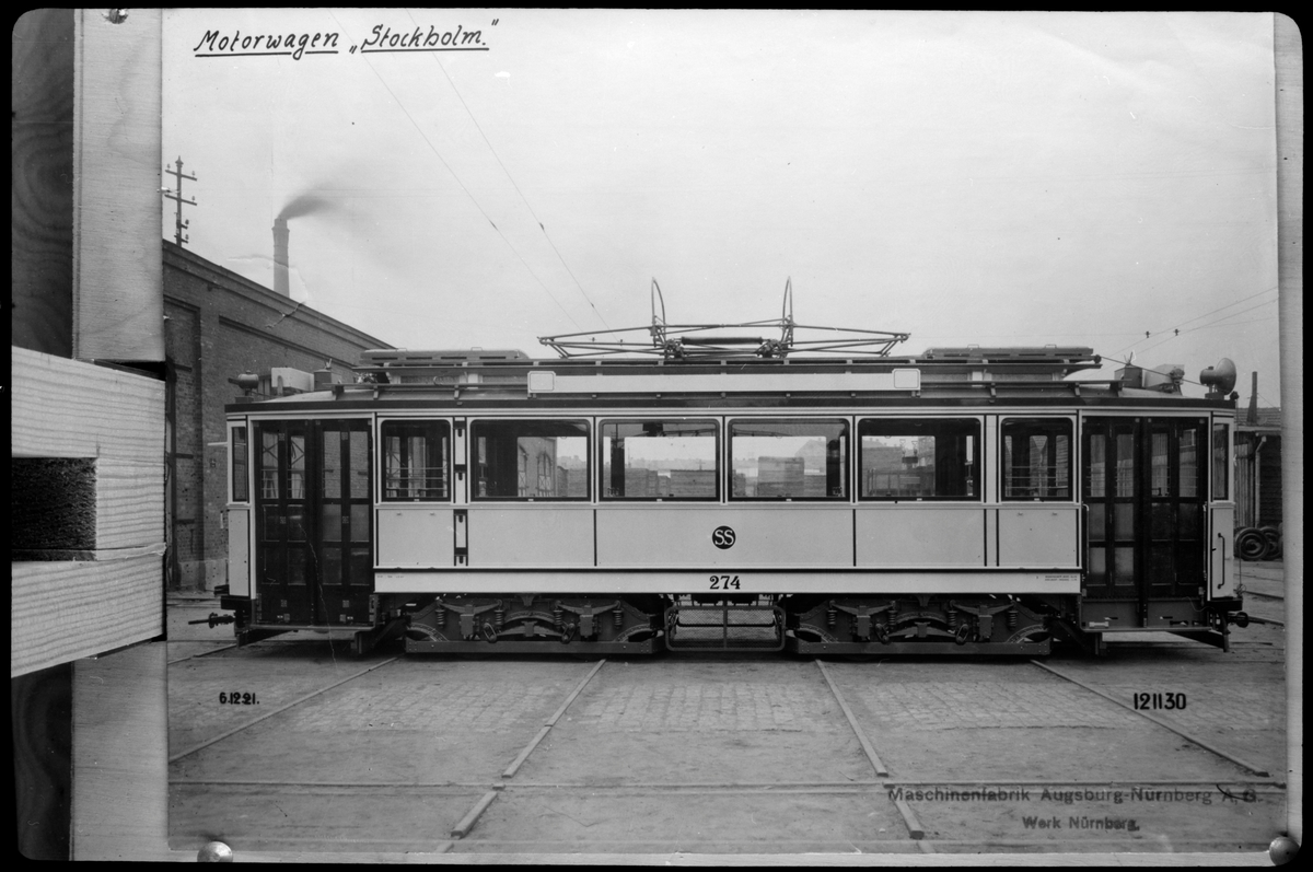 Nytillverkade Aktiebolaget Stockholms Spårvägar, SS A11 utanför fabriken i Nürnberg.