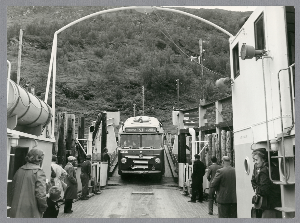 Statens Järnvägar, SJ buss 1877 kör ombord på Kvalöyfärjan.