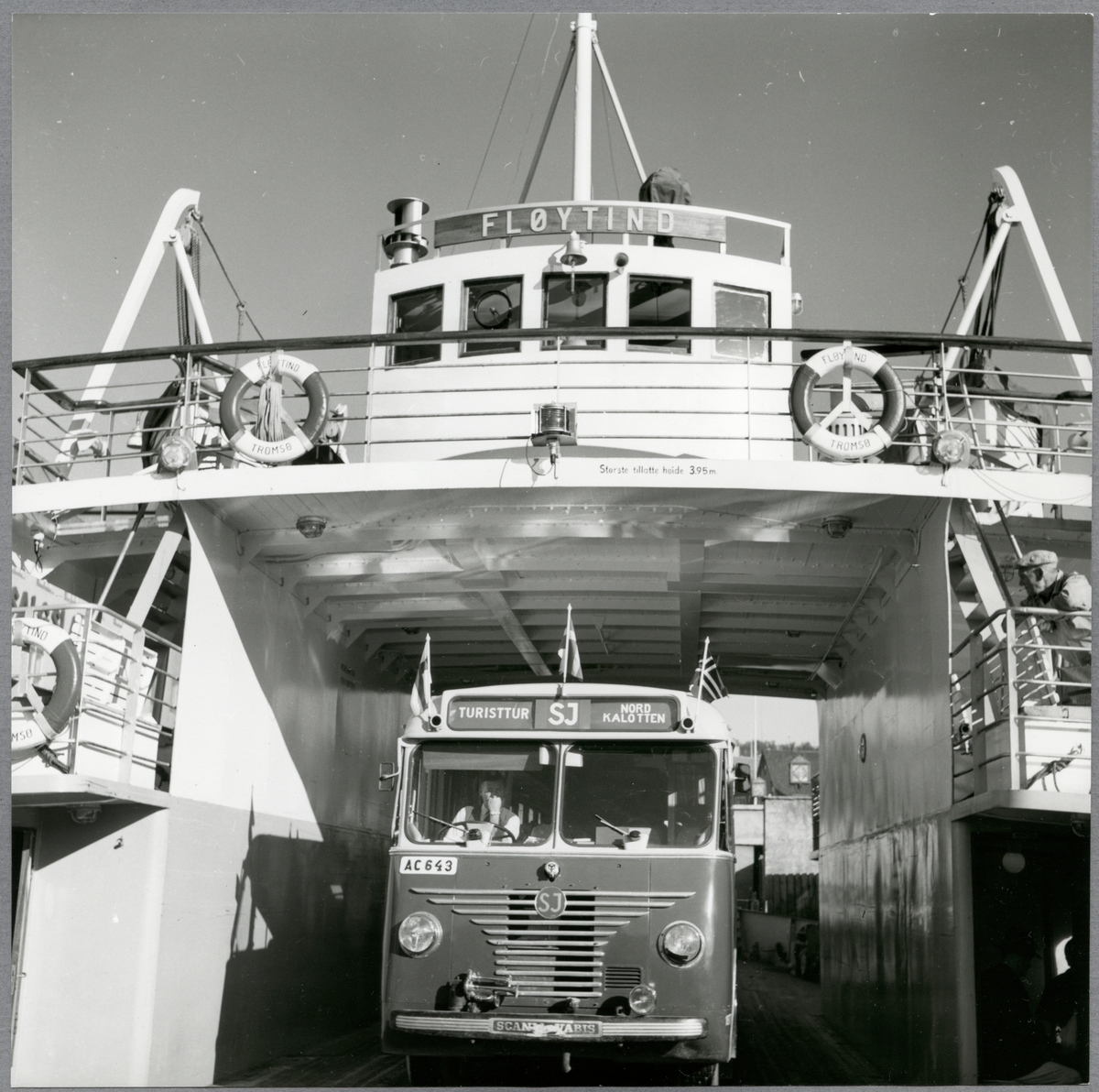Titel: Statens Järnvägar, SJ buss 1877 på färjan Fløytind mellan Tromsø och Tromsdalen.