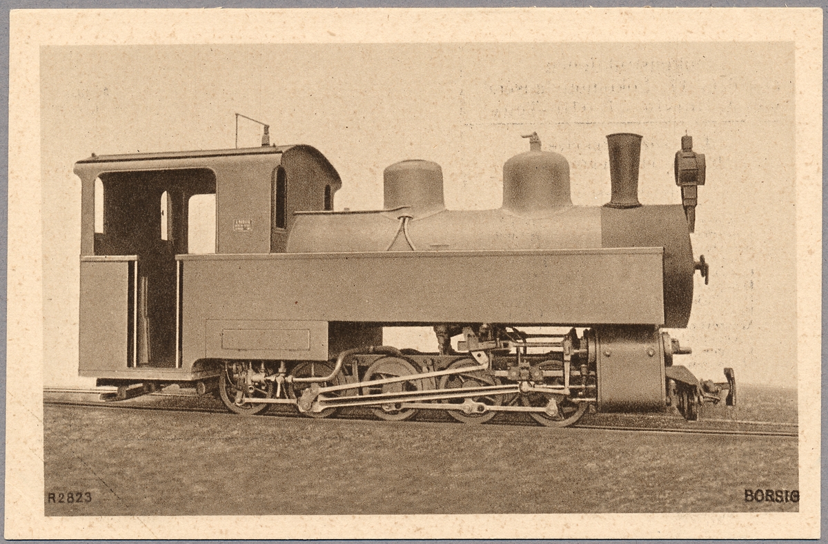Ånglok. Loket är tillverkat 1939 av A. Borsig och har spårbredden 600. Tillverkningsnumret är 14806. Axelföljden är E.