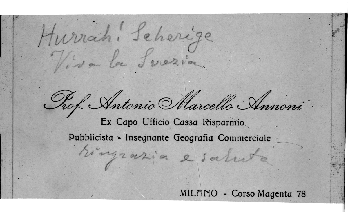 Vistkort Prof A M Annoni. Milanoutställningen.