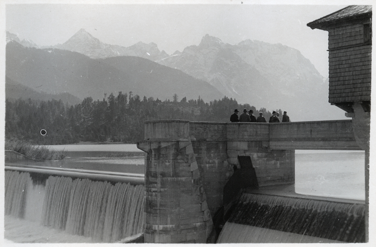 Dammanläggning mellan Walchensee och Mittenwald.