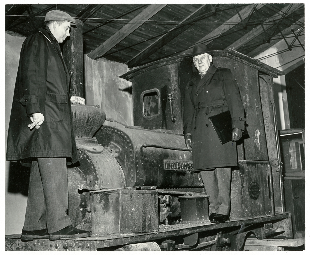Män vid ånglok Östra Södermanlands Järnväg, ÖSIJ lok 7 Helgenäs.
