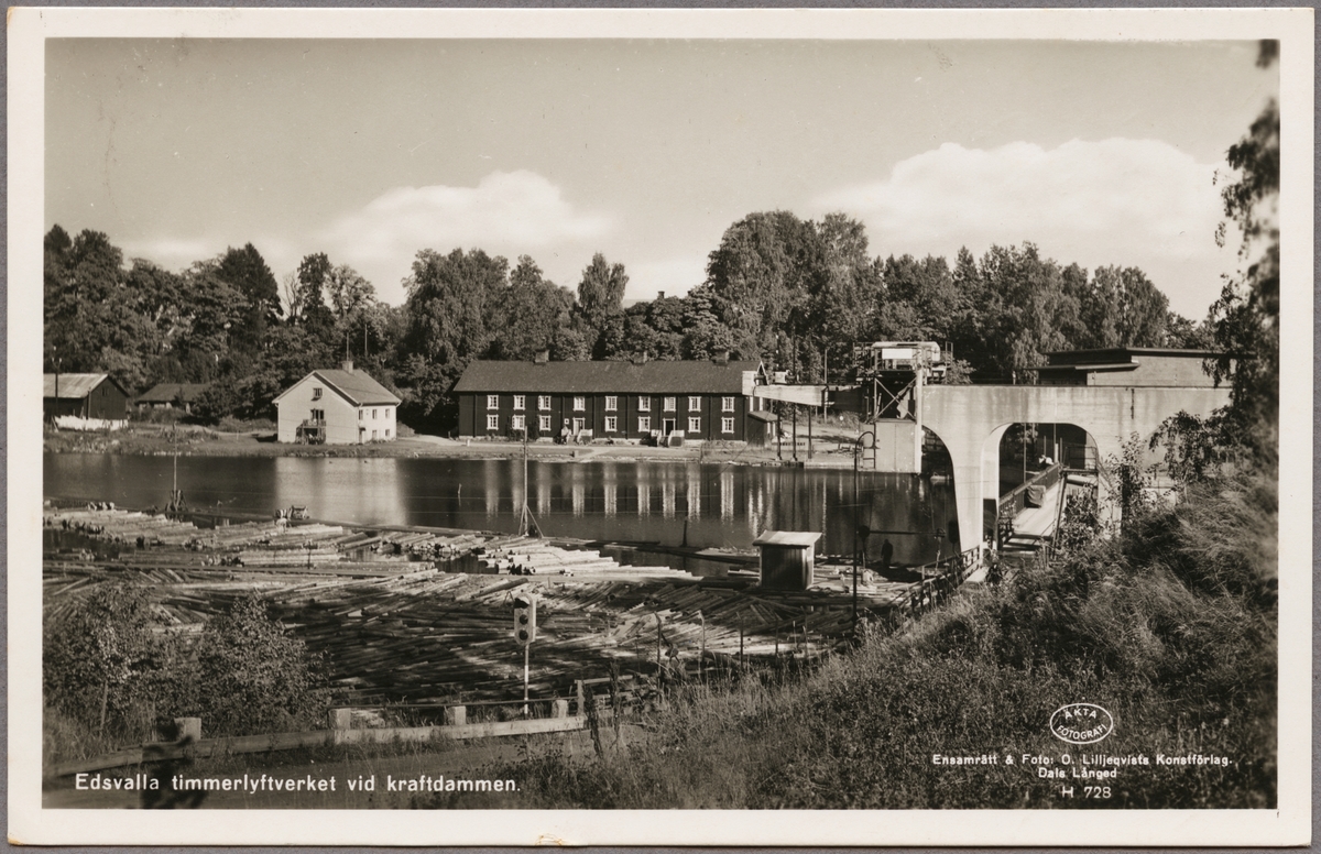 Kraftdammen med timmerlyftverket vid Edsvalla bruk.