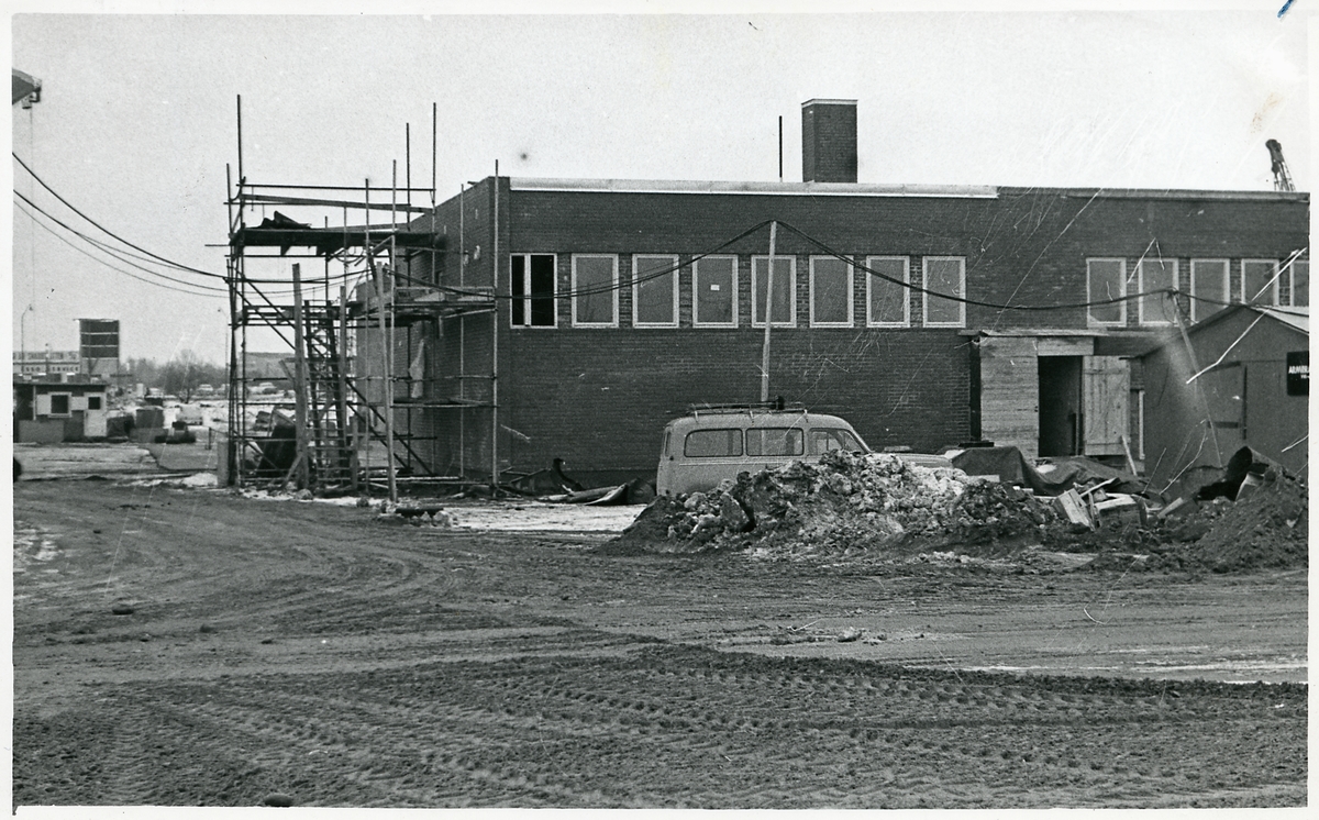 Statens järnvägars (SJ) expeditionsbyggnad under uppbyggnad i Örebro.