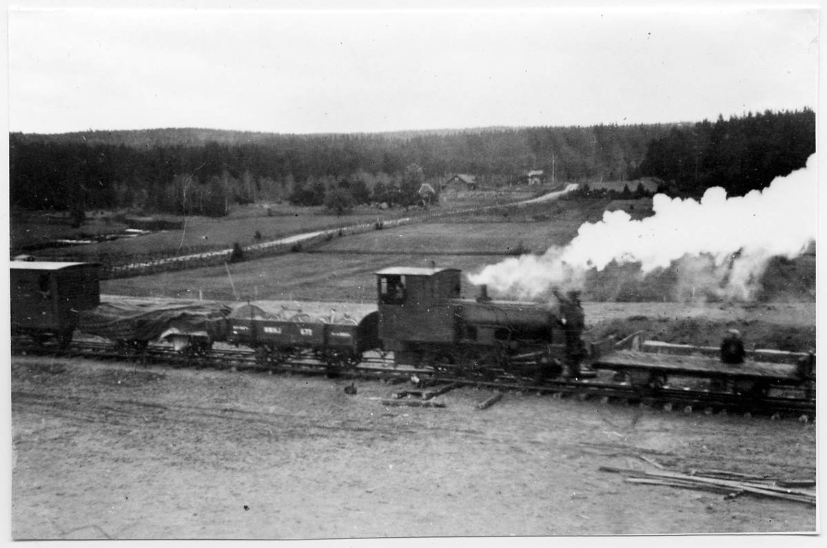 Gruståg vid Rumskulla. Norsholm – Västervik – Hultsfred Järnvägar, NVHJ lok 4.