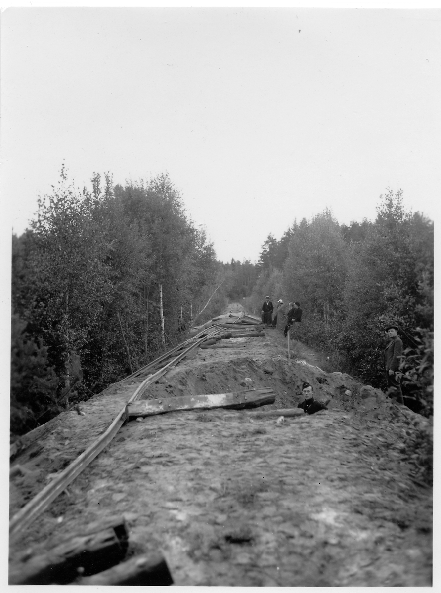 Pågående upprivning av Vimmerby – Ydrebanan. Mätning av effekter efter störtbombs övningar.