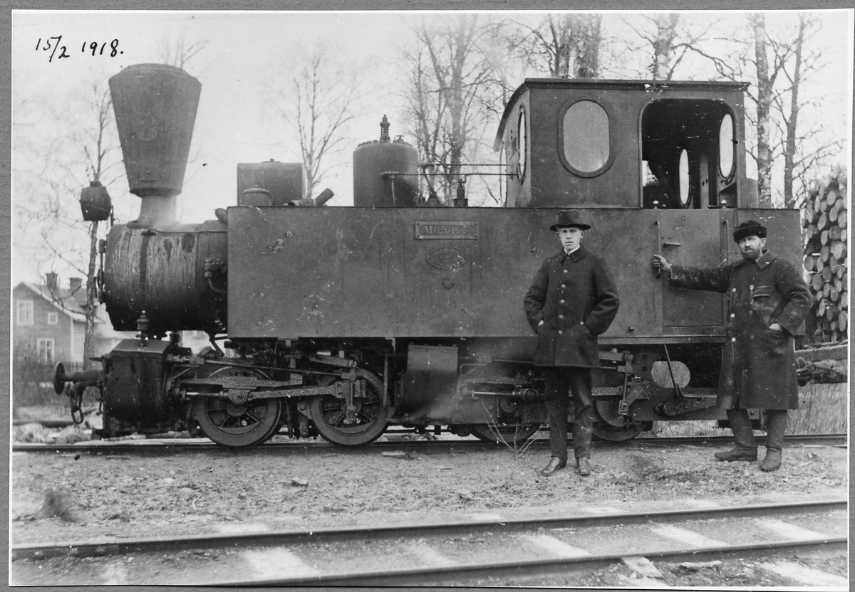 Kosta - Lessebo Järnväg, KLJ Lok 3 "Målerås" med stationsskrivare K Höglander och lokförare Ahlberg.