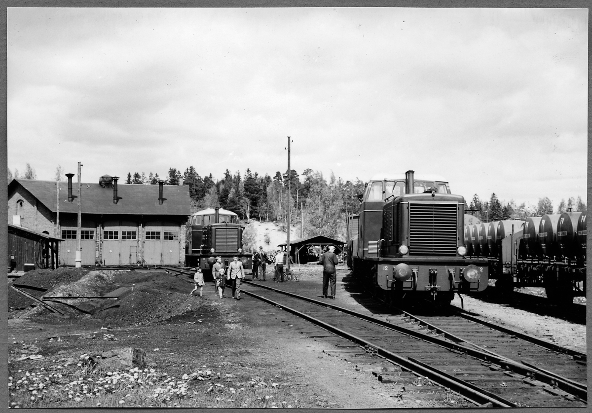 Stockholm - Nynäs Järnväg, SNJ diesellok 12 till höger och SNJ diesellok 11 till vänster.