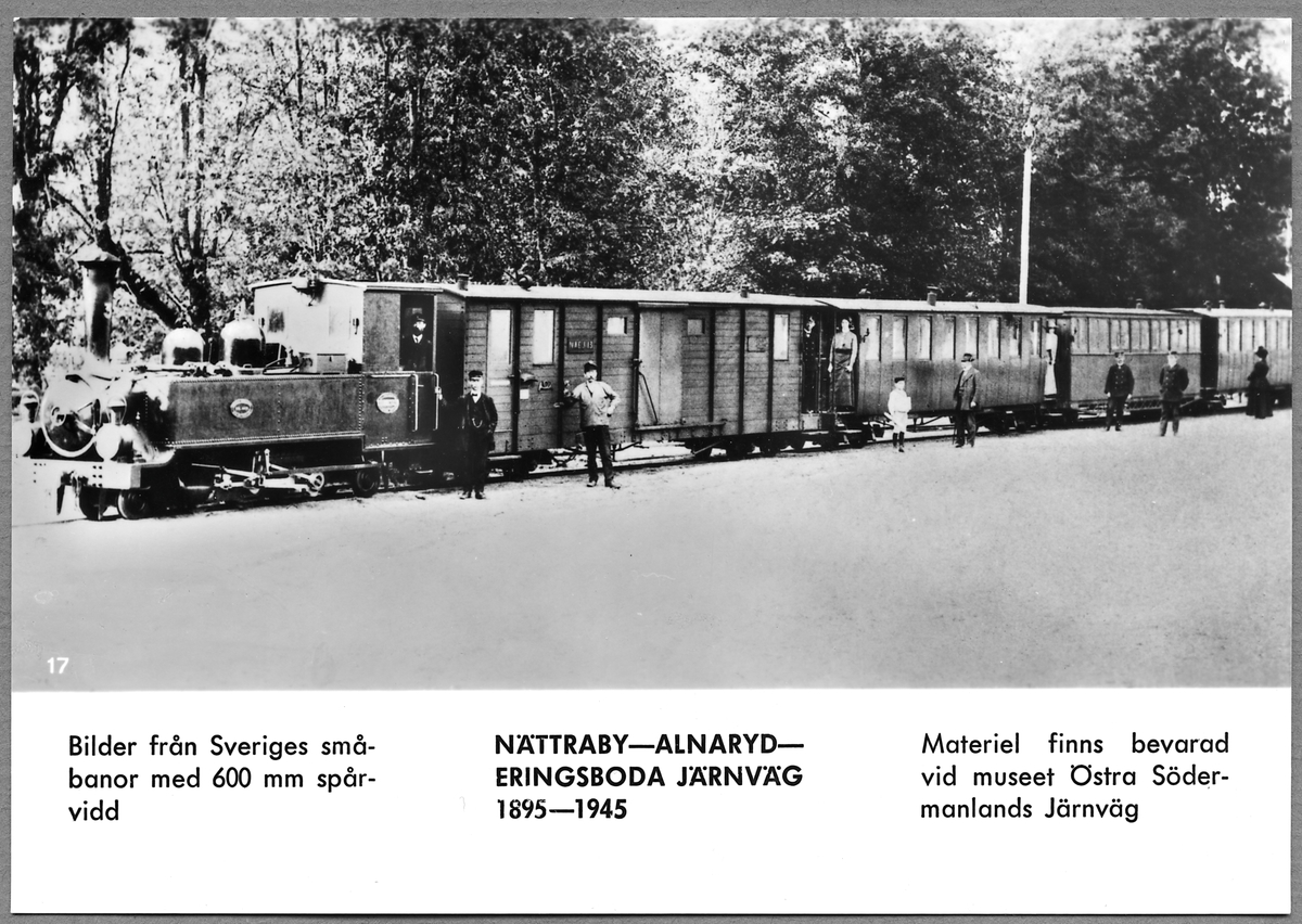 Nättraby - Alnaryd - Älmeboda Järnväg, NAEJ lok 3 "Axel E. Lindvall" med persontåg. Post- och resgodsvagn NAEJ 13.